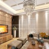 客厅的打造温馨舒适又不缺乏大气的氛围,白色的立体造型石膏板的打造给人的立体感更加的突出,大型的华丽圆形水晶吊灯的运用让空间的奢华感和舒适感瞬间的提升,浅色的沙发实木框架的运用让空间的整体装修风格更加的一致化,电视背景墙的设计采用的是皮雕的装饰手法给人的温馨视感更加的彰显,一个大型的落地窗的存在不仅为空间的采光和照明起到一定的延伸作用,产生的舒适和浪漫之感也是比较突出的。沙发背景墙的设计采用了大型的装饰画作为底面装饰三幅富丽堂皇的装饰画瞬间提升了装修的档次和主人的生活品味的存在。